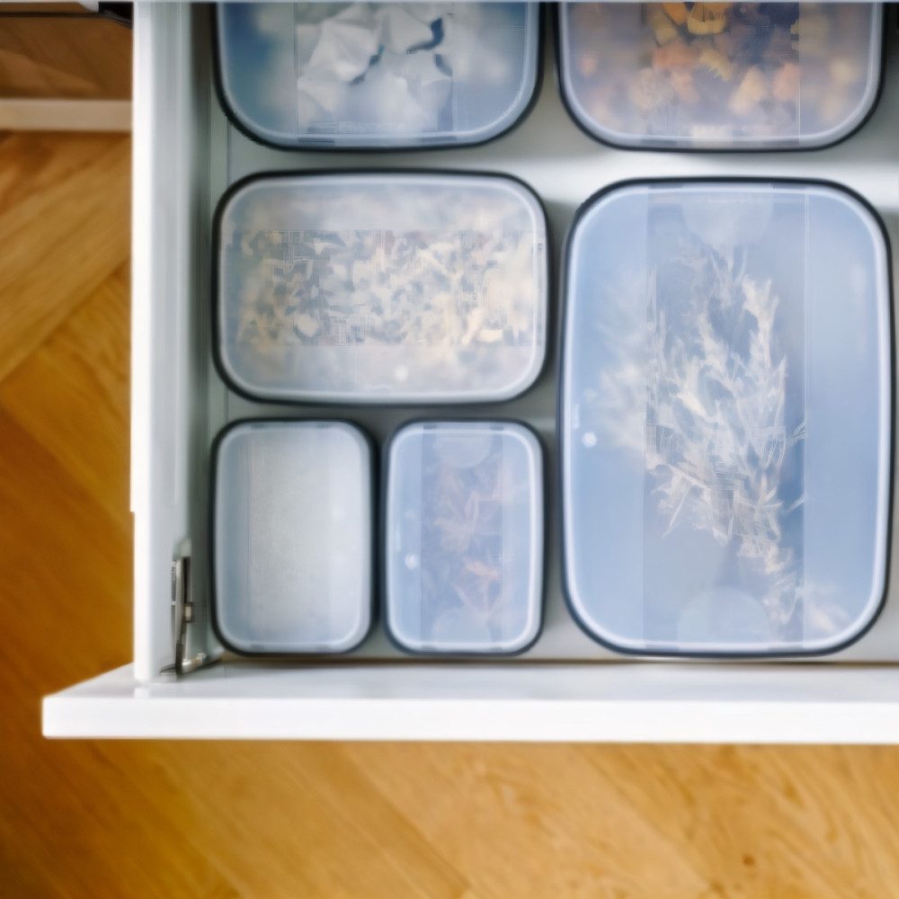 Через полупрозрачную крышку видно содержимое контейнера, что удобно для хранения в выдвижных ящиках.