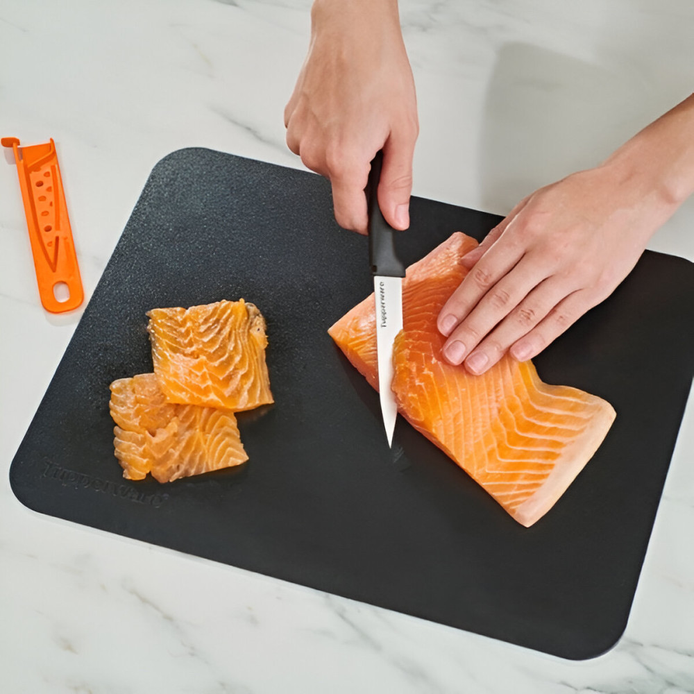 Нож имеет гибкое тонкое лезвие без заусенцев, которое оптимально режет любые продукты.