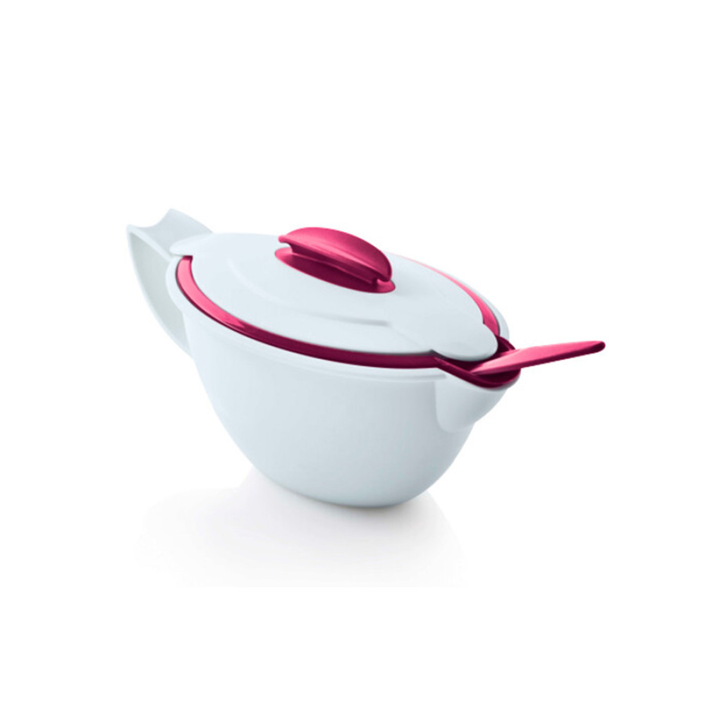 Изделие состоит из двух чаш - внешней белого цвета на 550 мл и внутренней бордового цвета на 400 мл.