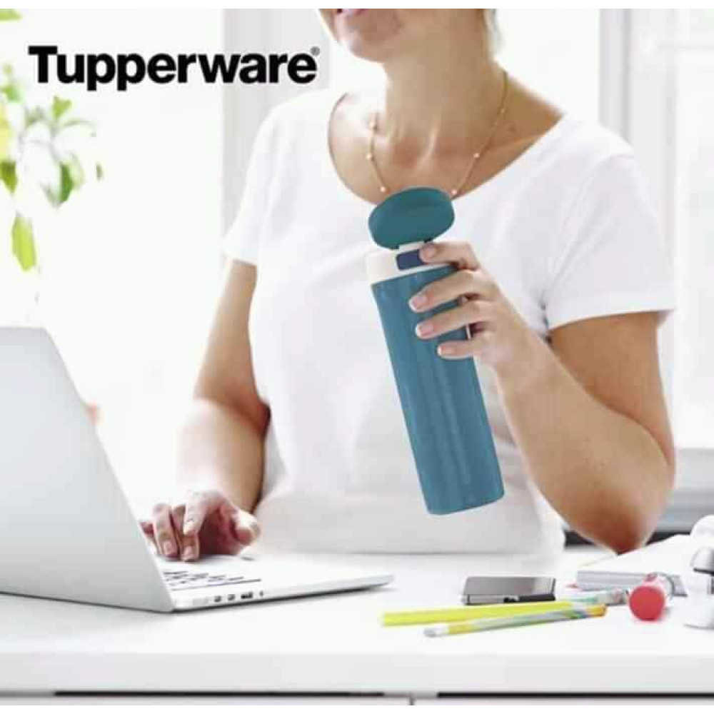 Термокружка в один клик 430 мл Tupperware – любимые напитки всегда с собой: зимой – обжигающий кофе, летом – ледяной фруктовый чай. Стильный металлический корпус, удобное для питья горлышко, открывание кнопкой, разборная конструкция для качественного промывания.